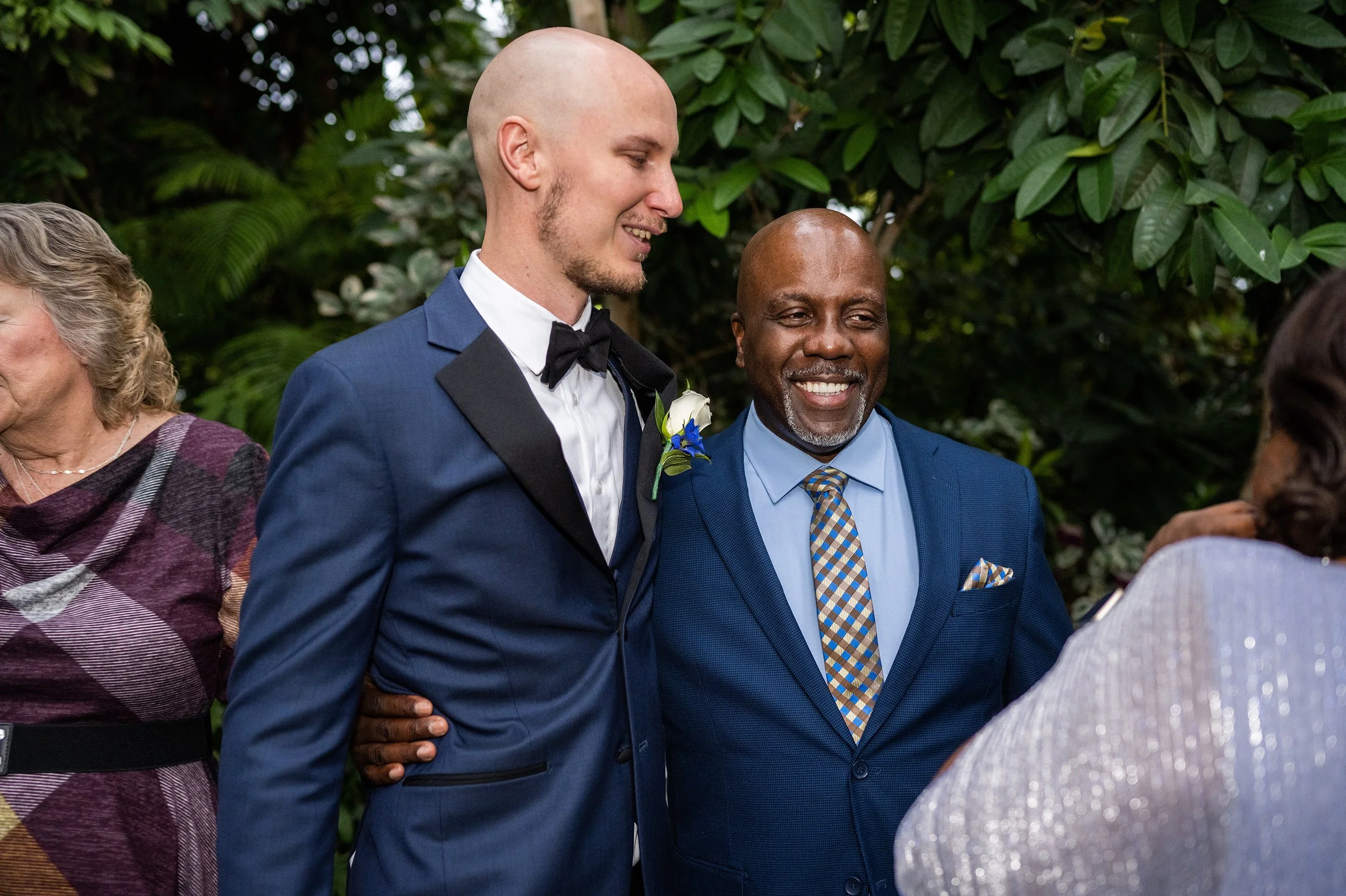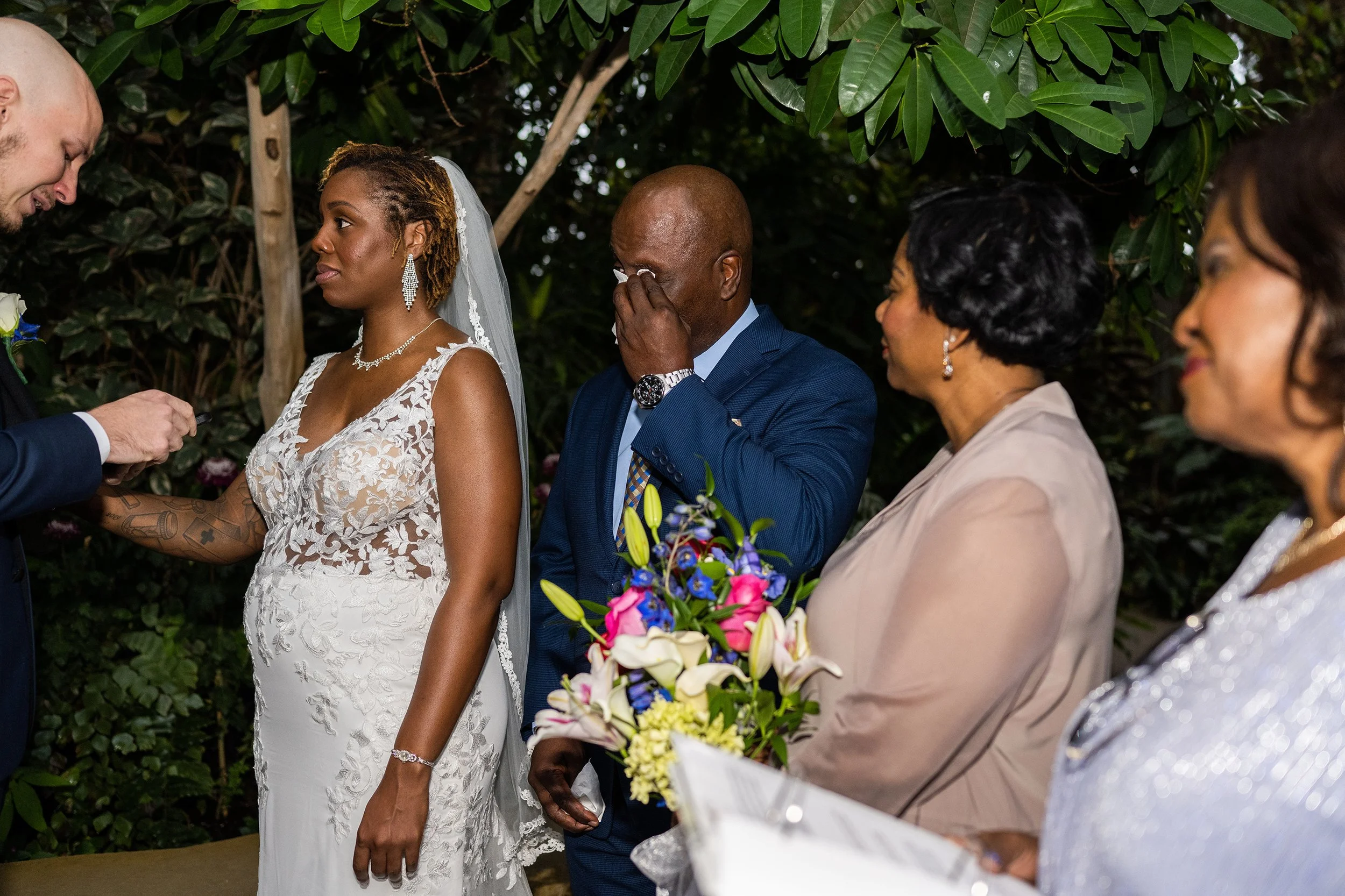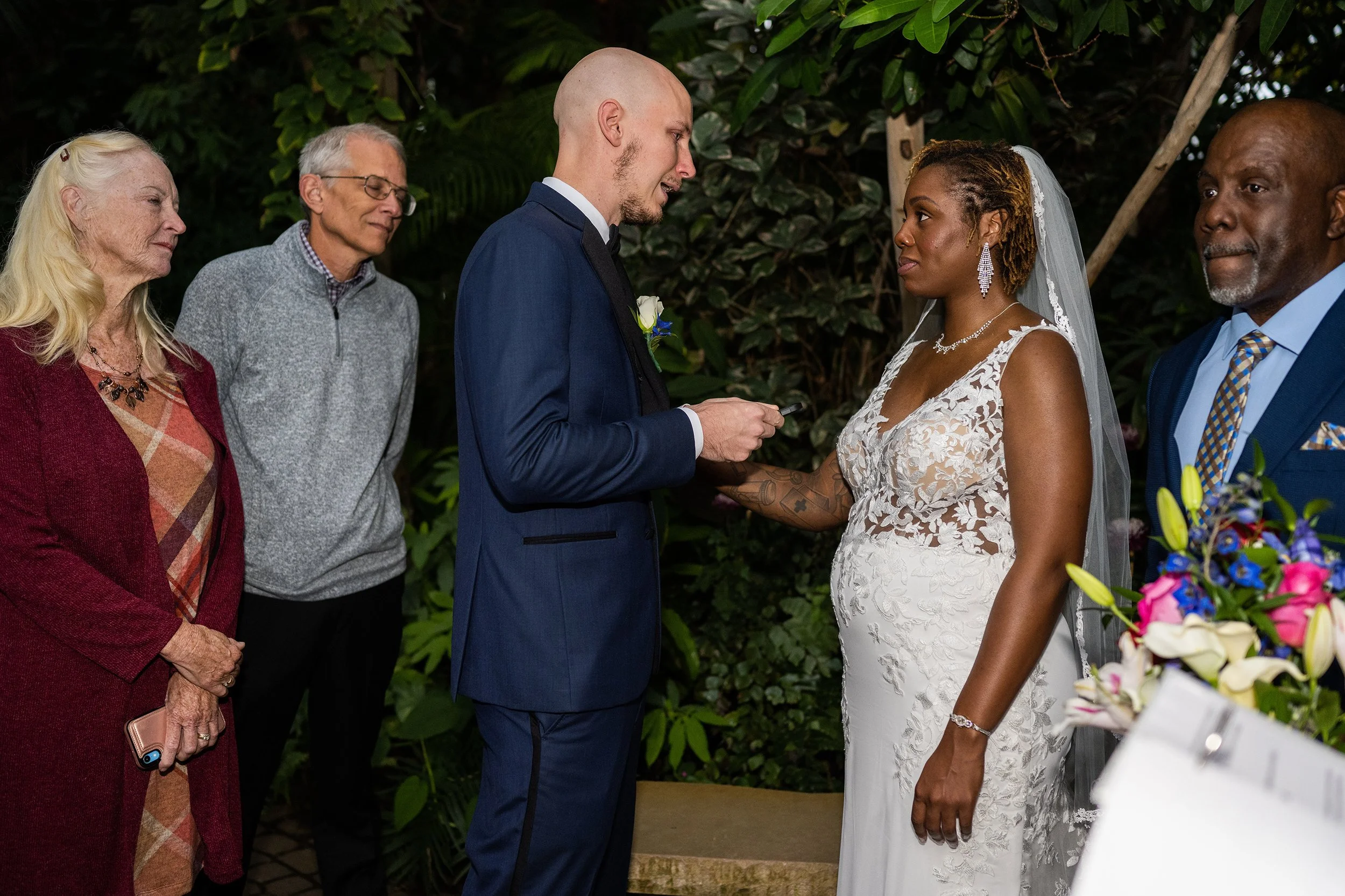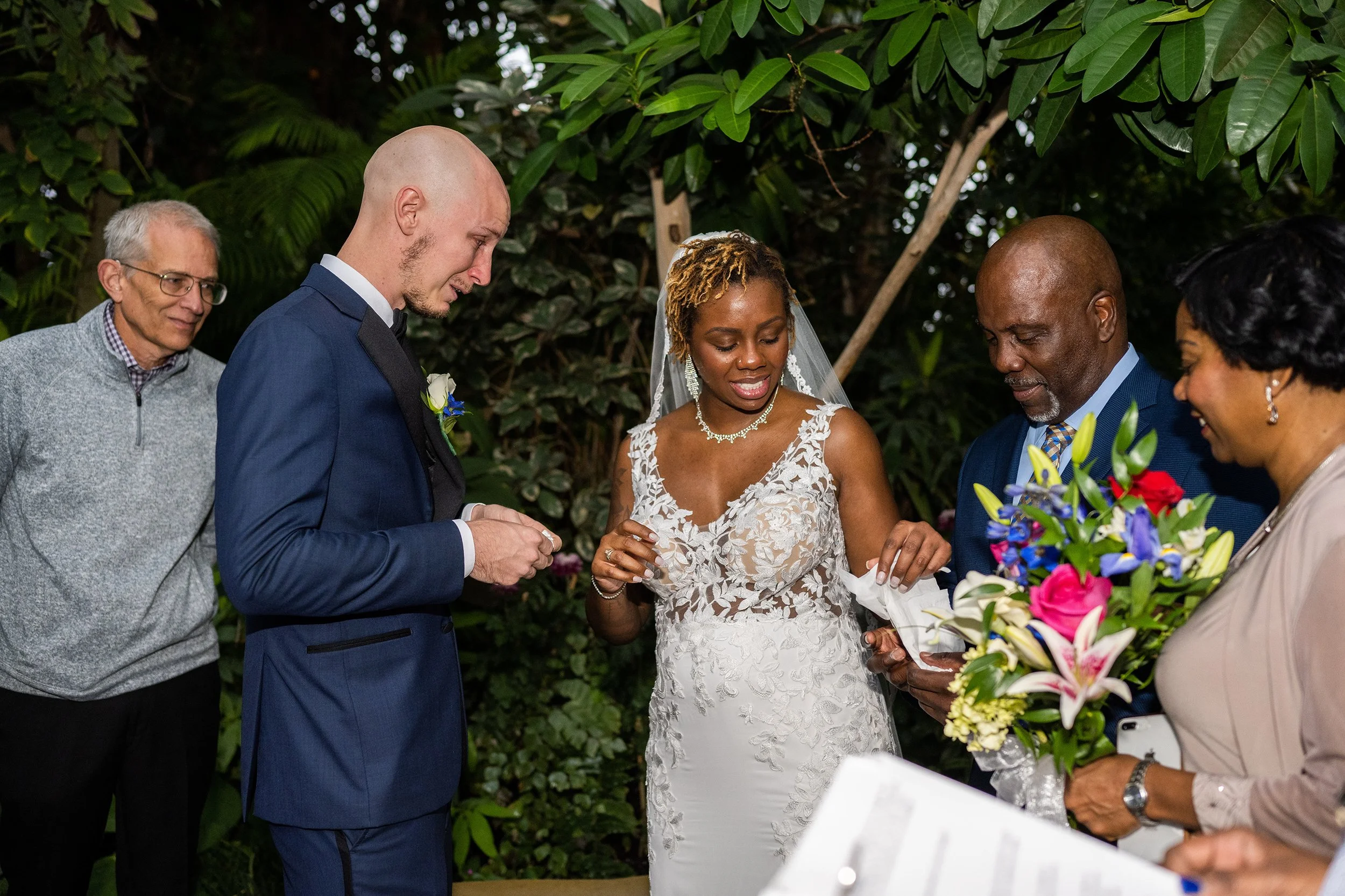 There were many tears and laughter during the vows. It was really sweet and lovely. The love these two have for each other was beautiful. After the ceremony was finished, along and some catching up with their remote loved ones, we did a few family photos, followed by couples portraits around the gorgeous tropical greenhouse. What a stunning setting to celebrate love and say “I do.” It was perfect.