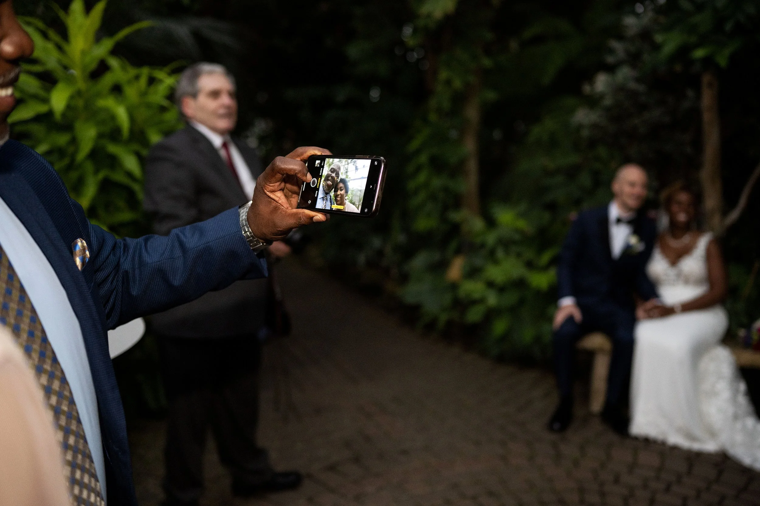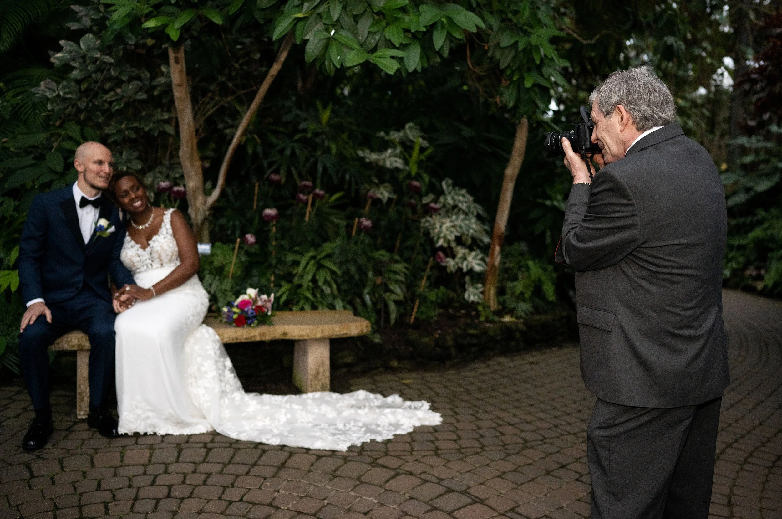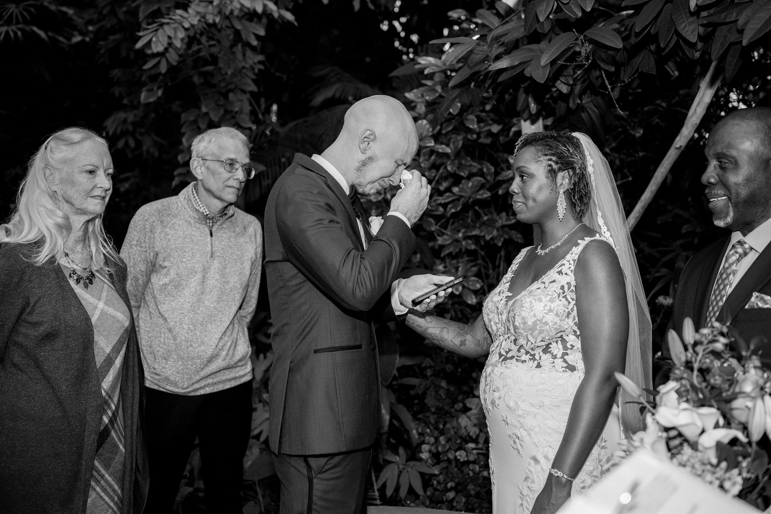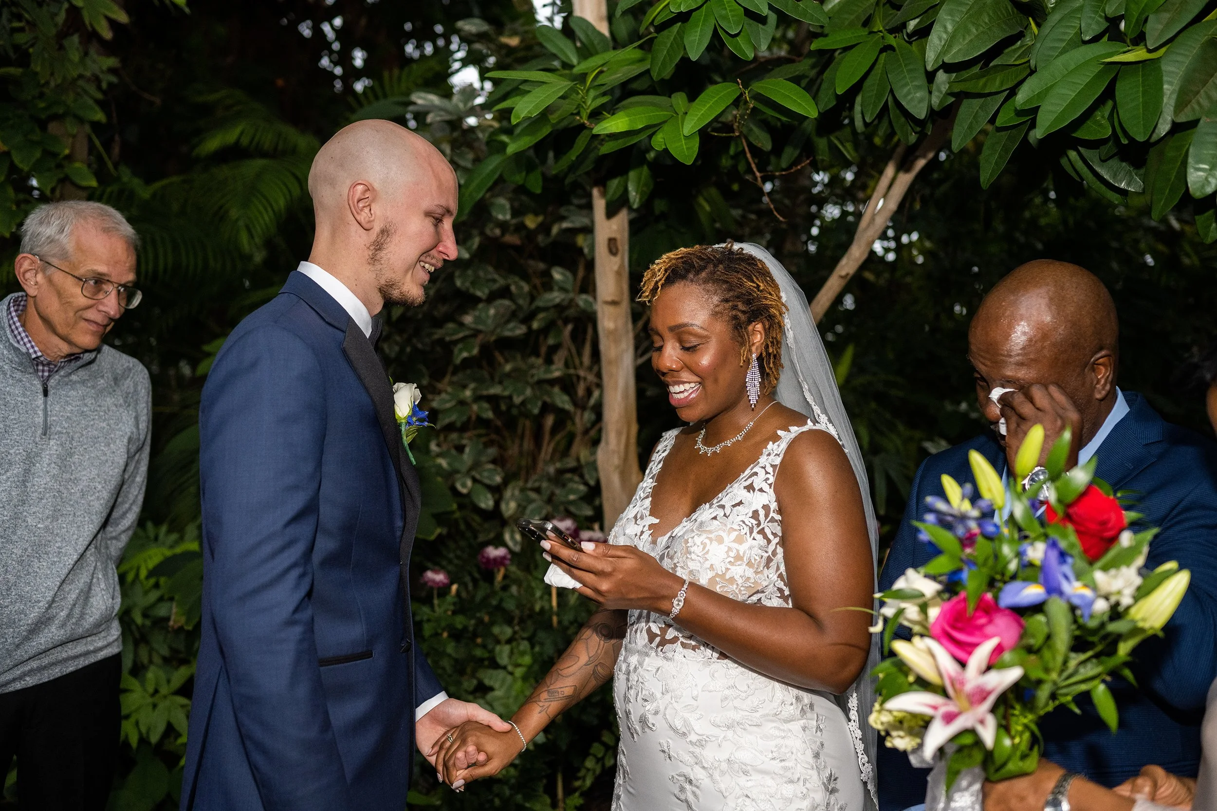 There were many tears and laughter during the vows. It was really sweet and lovely. The love these two have for each other was beautiful. After the ceremony was finished, along and some catching up with their remote loved ones, we did a few family photos, followed by couples portraits around the gorgeous tropical greenhouse. What a stunning setting to celebrate love and say “I do.” It was perfect.